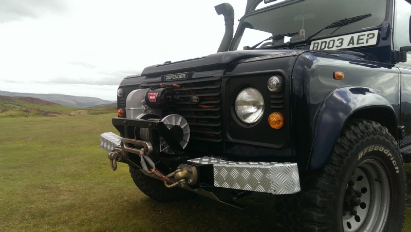 Heavy duty winch unit with fully water proofed electrics, air snorkel, steering guard and side runner body protection. Full chequer plate protection. Rear led reverse lighting also used as camp lighting for kitchen area. Front driving spots for additional vision in extreme conditions. Rear bump step. Diff guards, heavy duty suspension and dry bag lashings on the bonnet for extra kit space.