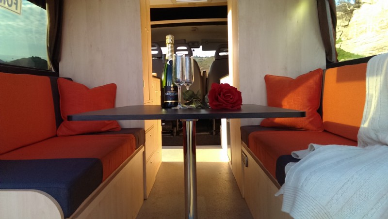 As a two birth vehicle it boasts ample room and storage for those who only require the basics (however leaving room for future upgrades should they be needed). Full vehicle electrics with split charge system, led lighting, 12v/240v fridge and hook up, 12v charge points and water pump. A gas twin hob and sink. Two roof lights with insect mesh and blinds. Privacy glazing and curtains. Matching upholstery throughout, Non slip flooring and rear table/dining/living area and double bed. Portable toilet room and storage.